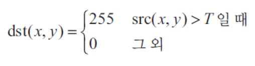 영상의 이진화는 값을 0 or 255로 지정한다. (검은색과 흰색으로 나눈다)