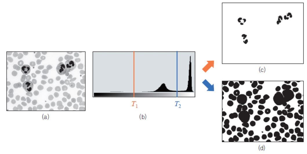 영상의 모든 픽셀에 대해 같은 임계값을 적용하여 이진화 수행하는 방식을 전역 이진화라고 한다.
