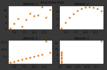 matplotlib라이브러리를 이용하여 anscombe데이터 4개 다 그려보기