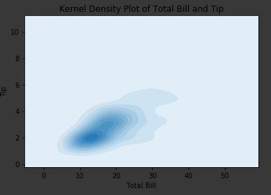 kdeplot() 메소드 사용하여 이차원 밀집도를 그릴 수 있다.